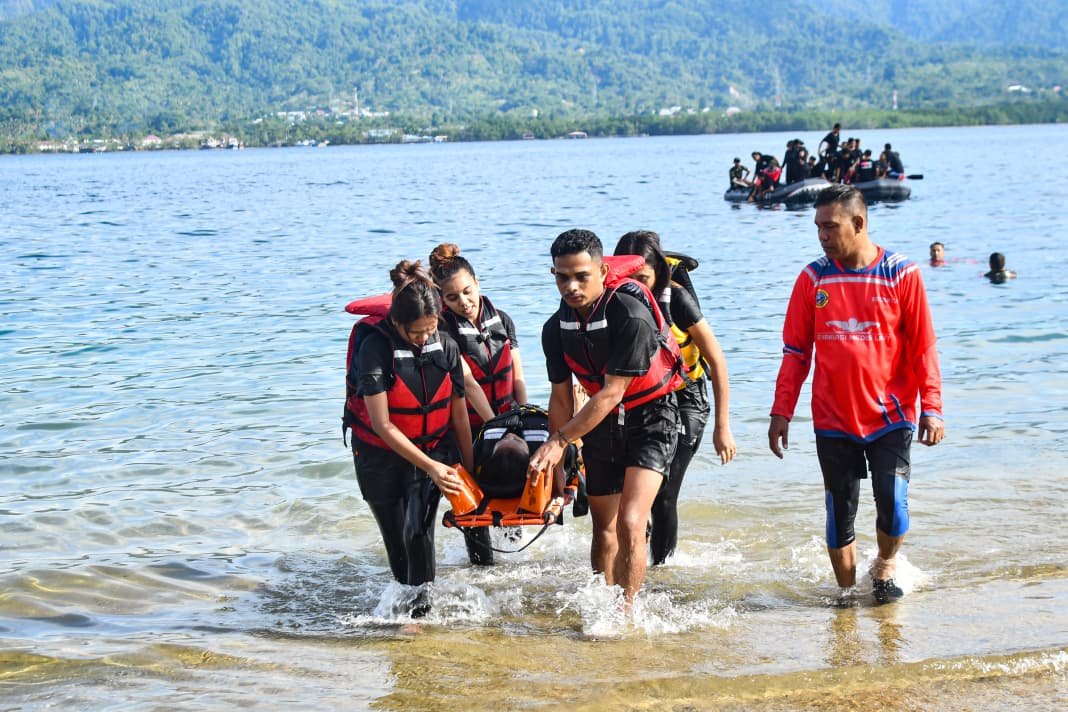 Mahasiswa tampak antusias mengikuti setiap tahapan kegiatan, mulai dari simulasi penggunaan alat keselamatan, teknik pemindahan korban dari perahu ke tandu evakuasi, hingga penanganan awal pasien dengan kondisi trauma maupun gangguan pernapasan di atas kapal.