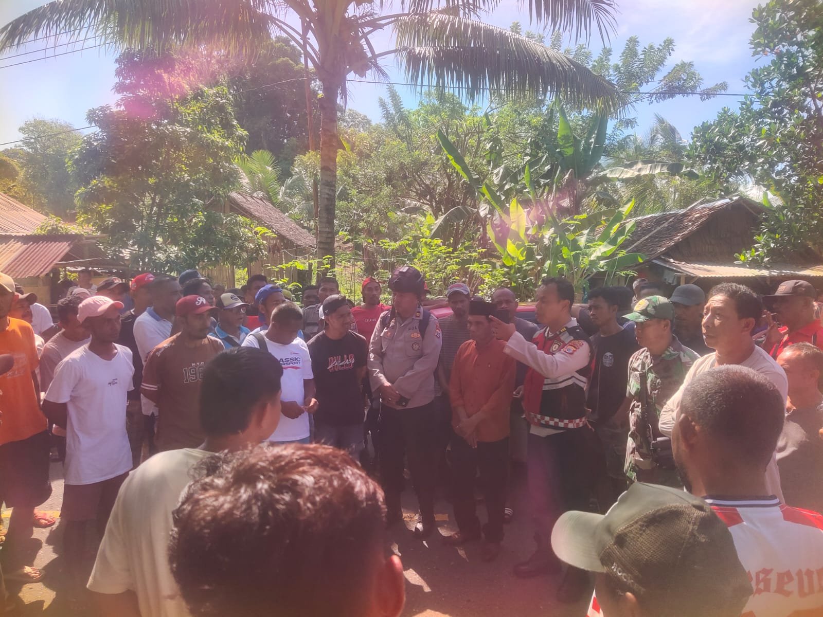 Menanggapi kondisi tersebut, personel Polsek Salahutu bersama unsur TNI langsung turun ke lokasi guna melakukan pengamanan sekaligus negosiasi dengan massa. Upaya ini difokuskan untuk mencegah meluasnya konflik dan memastikan akses jalan segera kembali normal.