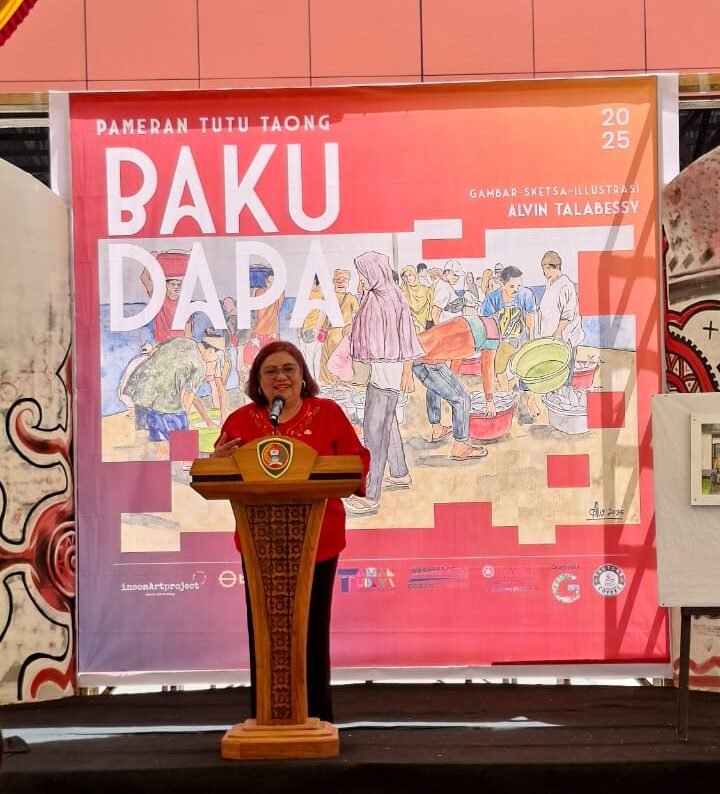 AMBON,MM. – Hari ini kita “Baku Dapa”—kita berjumpa. Tetapi perjumpaan yang dimaksudkan Alvin Talabessy melalui pameran ini bukan saja soal bertemu secara fisik. “Baku Dapa” adalah pertemuan rasa, pertemuan cerita, dan pertemuan memori. Di dalam karya-karya visualnya, Alvin mengajak bertemu dengan sudut-sudut Maluku yang mungkin pernah kita lihat, tetapi belum pernah benar-benar kita renungkan. Ia mengajak untuk bertemu dengan wajah-wajah, gerak, warna dan jejak kehidupan yang dekat dengan keseharian kita, namun sering terlewatkan.