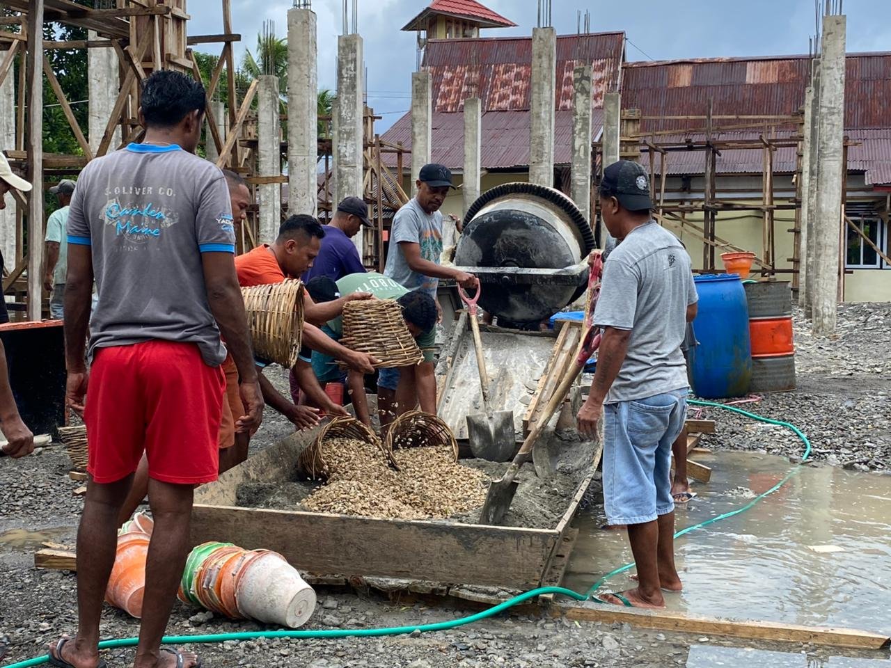 Kerja bakti dilakukan berulang. Tangan-tangan tua dan muda bekerja bersama, mengangkut pasir, memikul semen, membersihkan lahan, semua dilakukan tanpa bayaran, hanya dengan kasih dan kerelaan.
