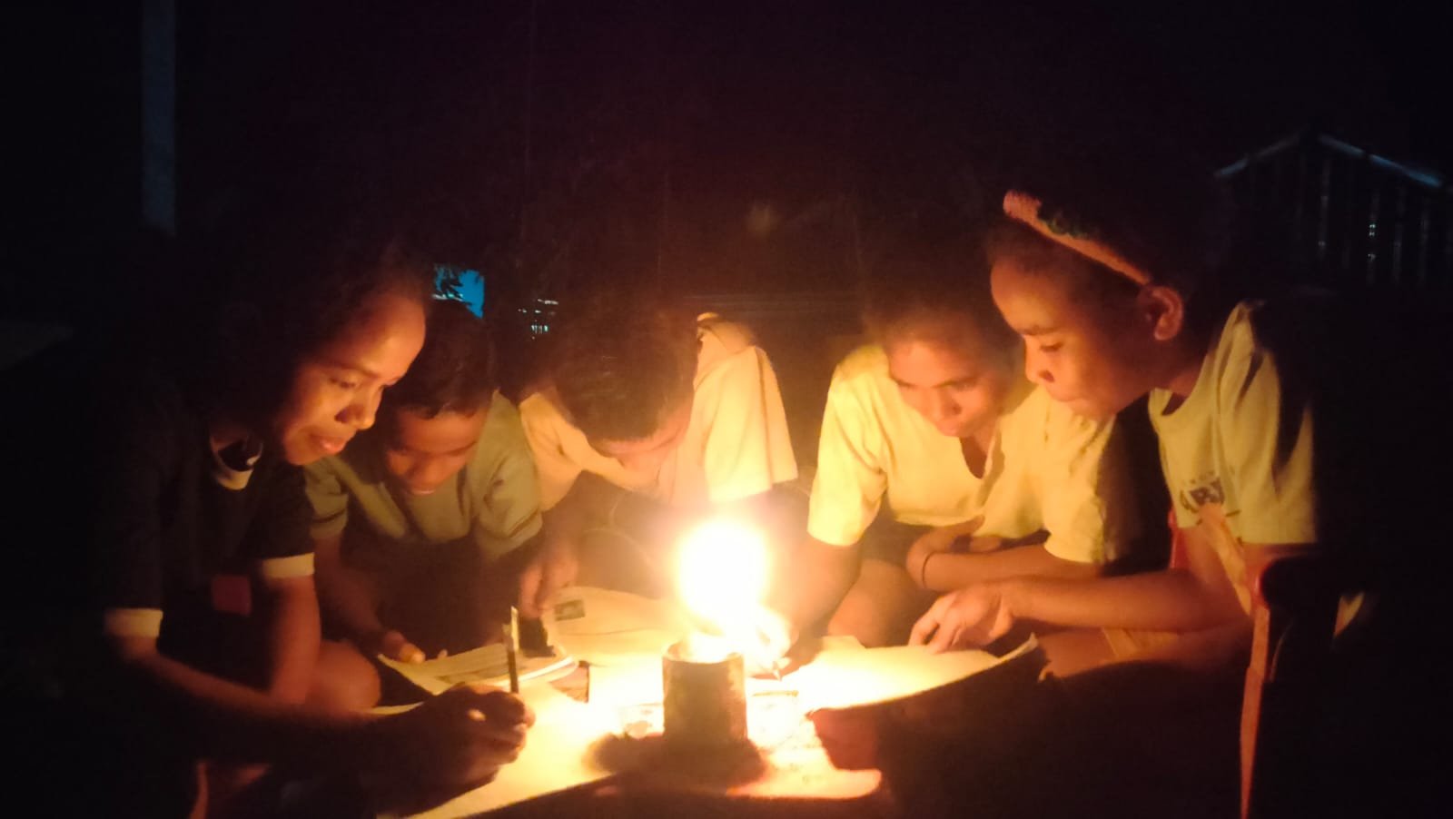Bagi anak-anak di desa ini, belajar bersama bukan hanya soal kebersamaan, tetapi juga cara bertahan. Satu pelita harus cukup untuk beberapa kepala. Minyak tanah mahal dan tidak selalu mudah didapat. Orang tua mereka hanya bisa menemani dalam diam.