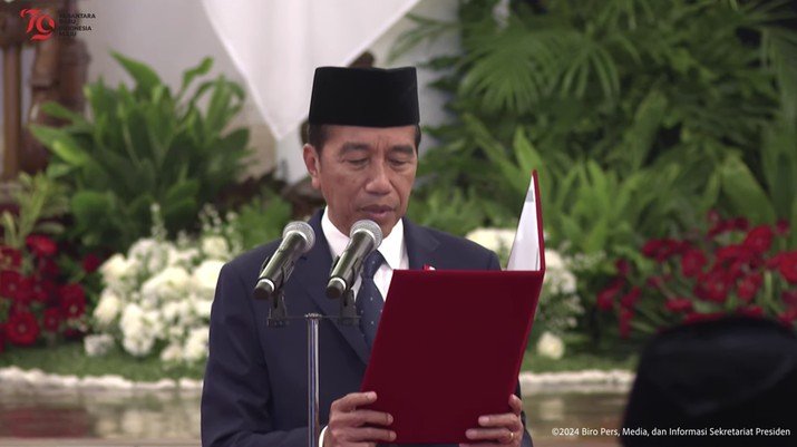 JAKARTA, MM. – Presiden Joko Widodo secara resmi melantik tiga menteri dan satu wakil menteri baru dalam perombakan (reshuffle) terbaru Kabinet Indonesia Maju. Pelantikan itu dilakukan di Istana Negara, Jakarta, Senin (19/8/2024).