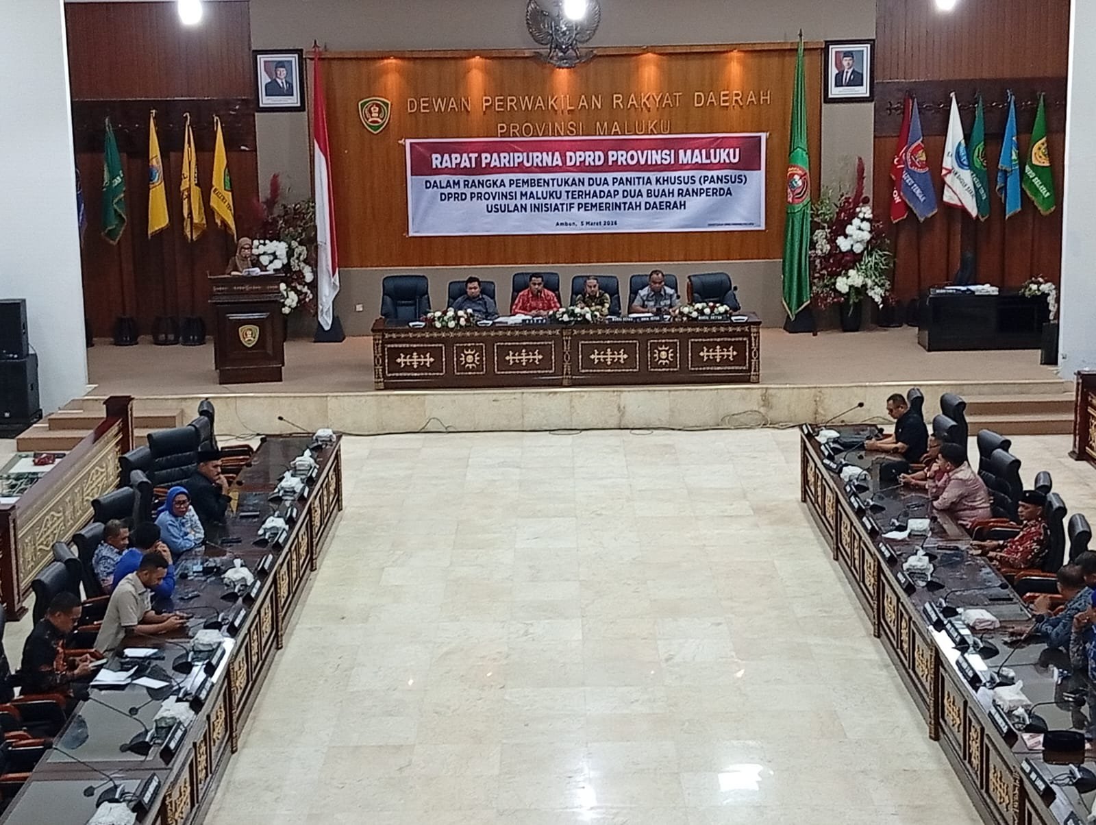 Rapat yang berlangsung di Rumah Rakyat Karang Panjang, Ambon, Kamis (5/3/2026), dipimpin Wakil Ketua DPRD Maluku Fauzan Rahawarin bersama Ketua DPRD Benhur George Watubun, serta Wakil Ketua John Lewerissa dan Azis Sangkala.