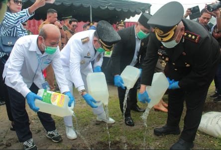 Dalam momen perayaan hari Bayangkara kali ini juga dilakukan pemusnahan 5000 liter minuman tradisional sopi yang di sita beberapa waktu lalu.
