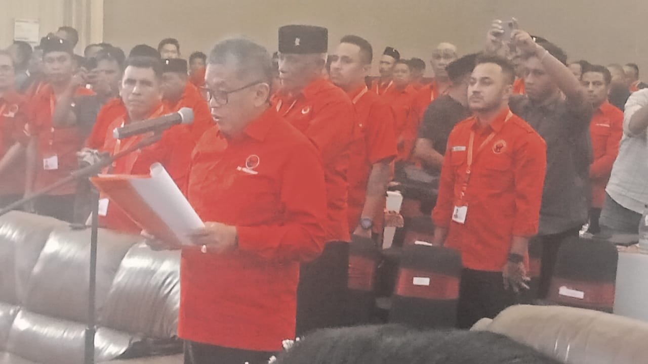 “Berdasarkan hasil evaluasi psikotes serta dua kali rapat pleno DPP PDI Perjuangan, DPP menetapkan saudara Benhur George Watubun sebagai Ketua DPD PDI Perjuangan Maluku masa bakti 2025–2030,” ujar Dolfie, yang pernyataannya disambut tepuk tangan meriah dari para peserta konferda.