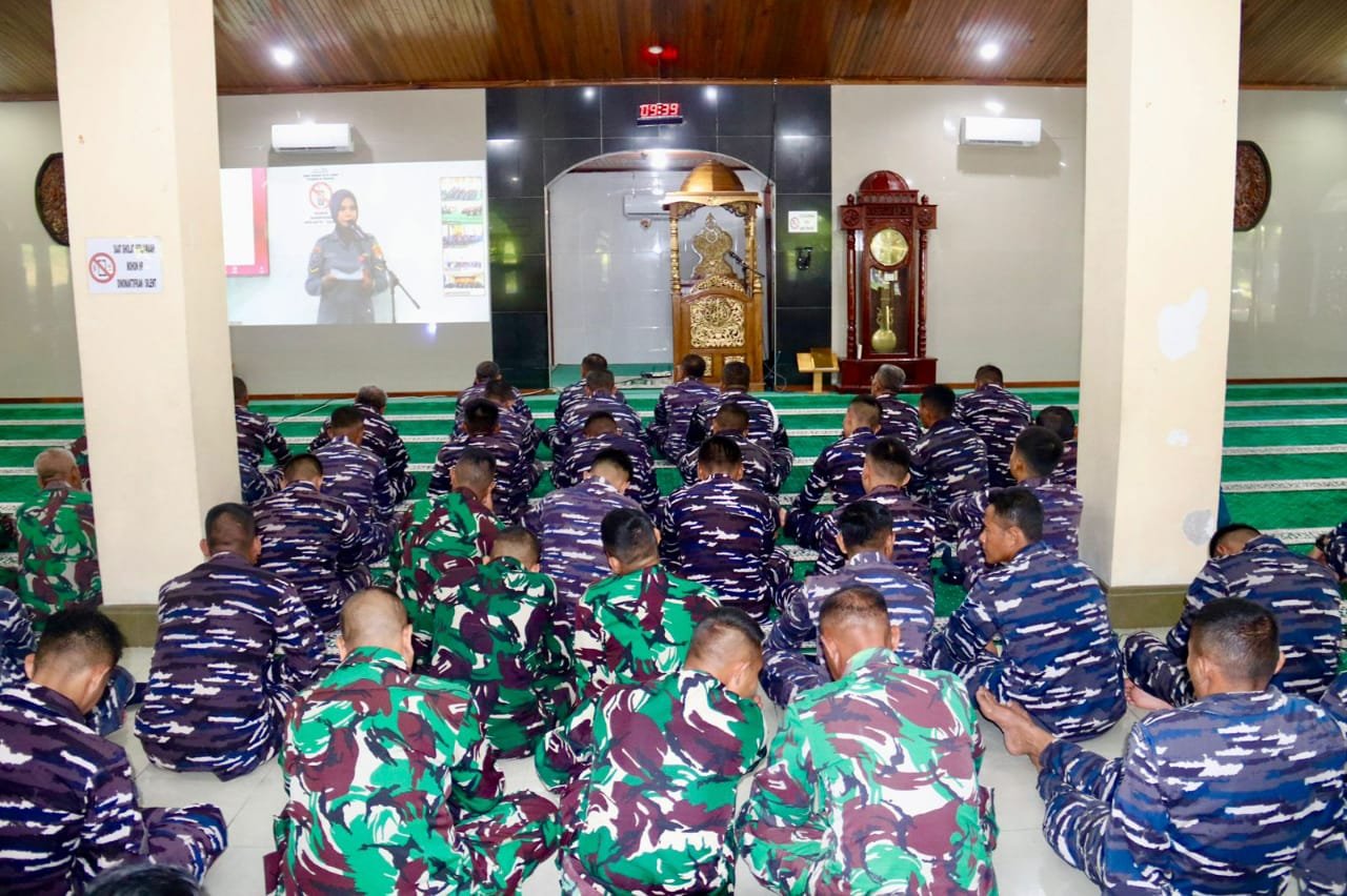 Tampak hadir para Pejabat Utama, para Kasatker Kodaeral lX, para perwira, bintara, tamtama dan PNS muslim jajaran Kodaeral lX mengikuti Kauseri yang menghadirkan KH. Dr. Effendi, M. Ag sebagai penceramahnya.