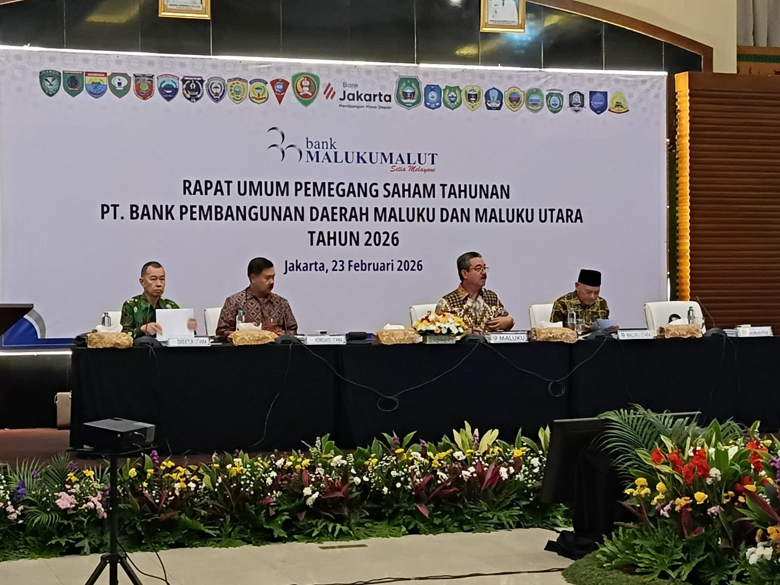 JAKARTA,MM. – Rapat Umum Pemegang Saham (RUPS) Tahunan Bank Maluku–Malut mengungkapkan lonjakan kinerja keuangan sepanjang tahun buku 2025. Paparan kinerja tersebut disampaikan dalam RUPS yang digelar di Hotel GiiA Maluku Jakarta, Senin (23/2), dan mendapat persetujuan bulat seluruh pemegang saham.
